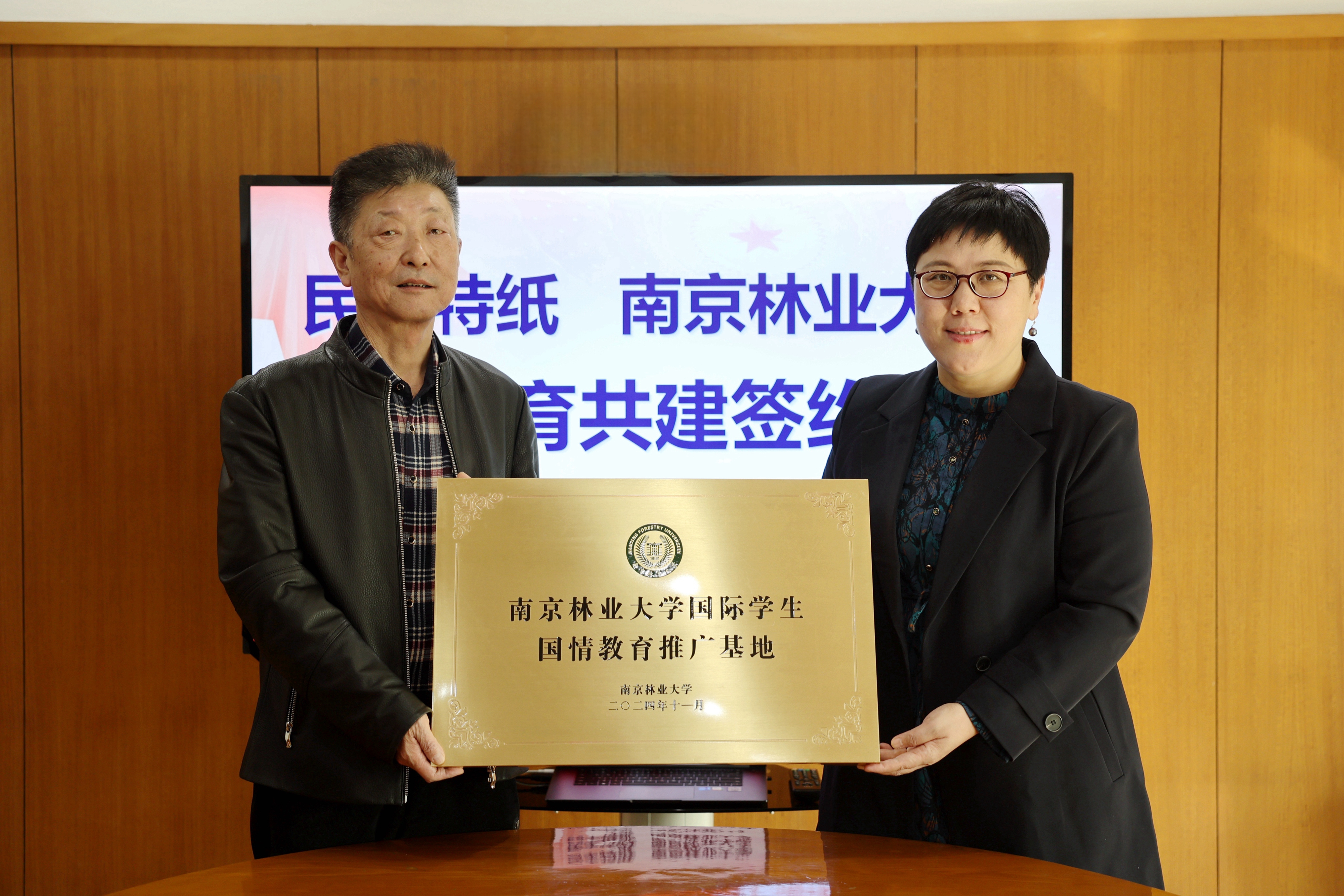 會上,曹繼華和任浩代表共建雙方簽訂《國際學(xué)生國情教育基地合作協(xié)議書》,任浩為民豐特紙授予“南京林業(yè)大學(xué)國際學(xué)生國情教育推廣基地”牌匾。